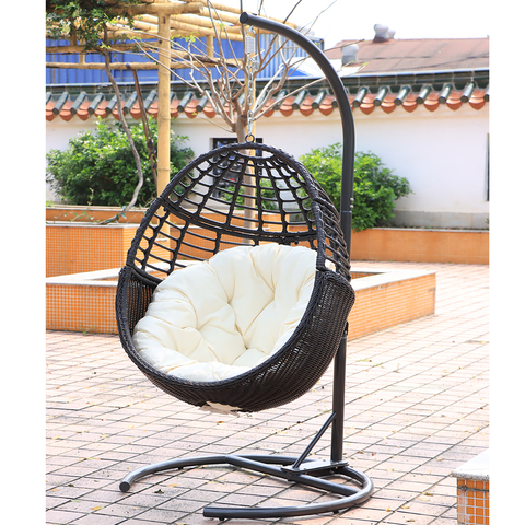 Moderne Ei Vorm Tuinmeubilair Rieten Rotan Opknoping Patio Indoor Ei Schommel Stoel Met Standaard