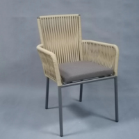 Sedia moderna da pranzo da esterno con struttura in alluminio resistente e corda impermeabile da spiaggia in metallo legno applicabile ai mobili da ristorante