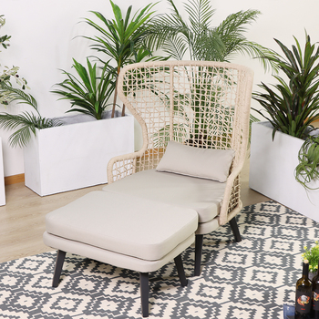 Juego de sofá individual de cuerda de ocio Balcón Hotel Patio Resort Sofás Sillas de ocio Juegos Silla de mimbre Bistro al aire libre